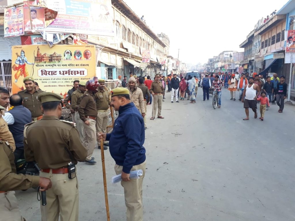 इस धर्मसभा को लेकर जिला प्रशासन के साथ ही उत्तर प्रदेश शासन भी हाई अलर्ट पर है। धर्म सभा को लेकर जिला प्रशासन ने रूट डायवर्जन कर दिया है। धर्मसभा में आने वाले सभी वाहनों को छोड़कर कोई भी बड़े वाहन अयोध्या की तरफ नहीं आ सकेंगे। यहां पर अब तो अंबेडकरनगर-सुल्तानपुर-रायबरेली मार्ग से आने वाले बड़े वाहनों पर प्रतिबंध लगा दिया गया है। धर्म सभा के चलते 70 हजार सुरक्षा कर्मियों को लगाया गया है। किसी अनहोनी को लेकर लोगों में खौफ भी है और रामभक्त इस उम्मीद में इस ओर नजर लगाए हैं कि यहां से भगवान राम को उनका घर मिलने का रास्ता साफ होगा।विश्व हिंदू परिषद की धर्मसभा को आज लेकर आज अयोध्या हाई अलर्ट पर है। यहां पर केंद्र के बलों के साथ पीएसी तैनात है। अयोध्या की सभी प्रवेश द्वार को सील कर दिया गया है। यहां पर साइकिल सवारों को भी रोका गया है। अयोध्या के प्रवेश द्वार उदया चौराहे पर सील किया गया है। इसके साथ ही टेढ़ीबाजार चौराहे को भी सील किया गया। इसके श्रीराम अस्पताल जाने वाले तीमारदार भी काफी परेशान हुए।