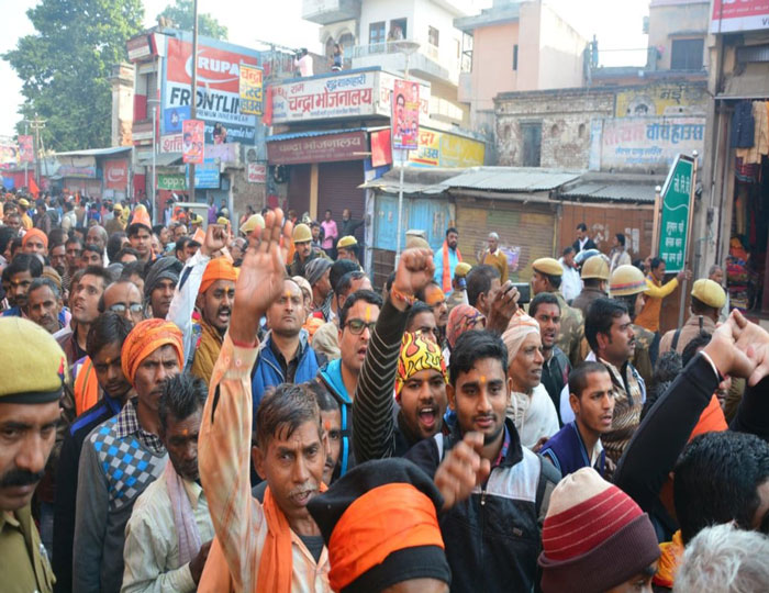 अयोध्या में आज धर्म सभा में राम भक्तों का हुजूम उमड़ा है। यहां पर धर्म सभा में करीब एक लाख राम भक्त पहुंचे है। अभी भी राम भक्तों का आना जारी। पंचकोसी परिक्रमा मार्ग पर राम भक्तों का तांता लगा है। यहां पर प्रदेश के 48 जिलों के राम भक्त धर्म सभा में हैं। यह सब करीब 500 बस के साथ ट्रेन तथा निजी साधन से पहुंचे हैं। यहां तीन हजार से ज्यादा कार्यकर्ताओं की फौज व्यवस्थाओं के मद्देनजर तैनात की गई है।
