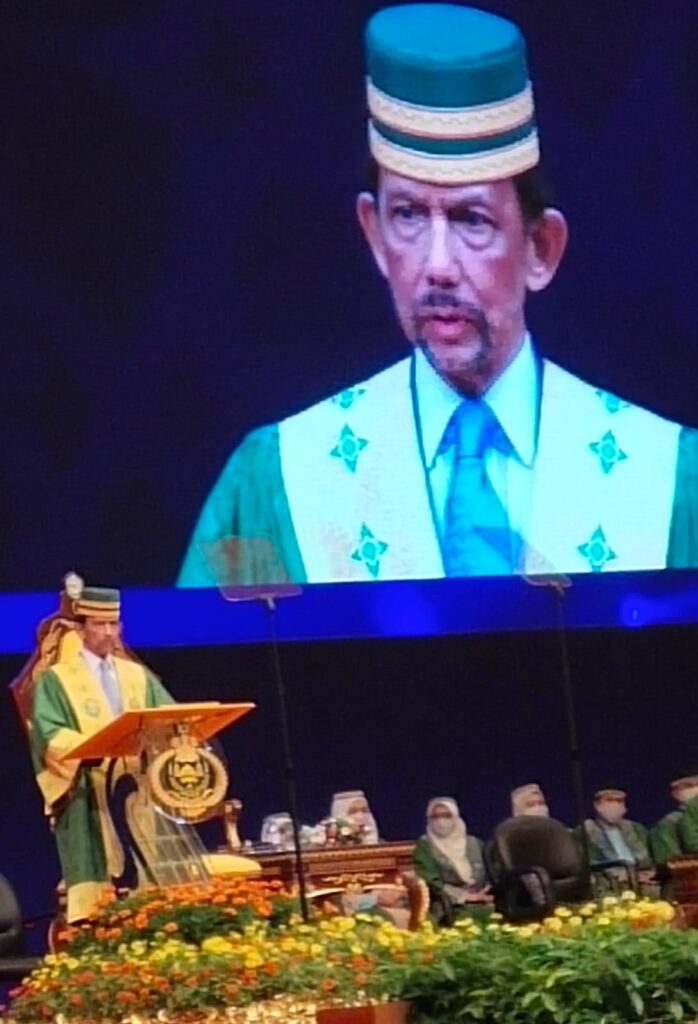 The ceremony was held at the International Convention Centre (ICC) in Berakas. Accompanying His Majesty was His Royal Highness Prince (Dr) Haji Al-Muhtadee Billah, the Crown Prince and Senior Minister at the Prime Minister’s Office, and the Pro-Chancellor of UNISSA.