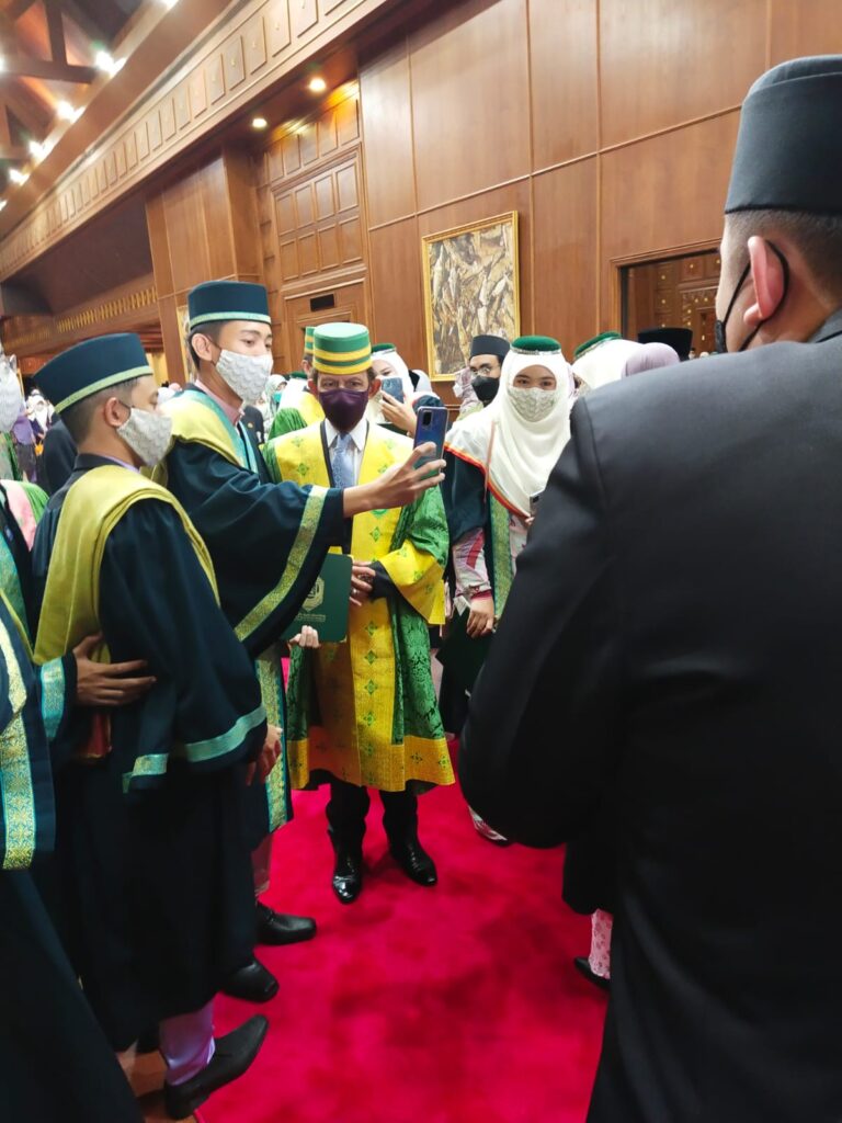 His Majesty then delivered a titah and presented certificates to eight PhD graduates, 62 Master’s Degree graduates, 11 Diploma in Islamic Law and Syar’ie Law graduates, 3 Postgraduate Diploma graduates, 237 Bachelor’s Degree graduates and 28 Higher National Diploma (HND) Of those who graduated, 33 were international students from Singapore, Thailand, Malaysia, Indonesia, Tanzania, Morocco, Burkina Faso, Yemen, and Sri Lanka.